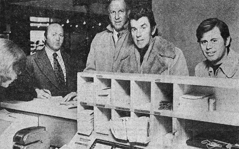 Sven-Åke Nyström, Bruce Norris, Joe Besch and John Ziegler checking in at the Sheraton Hotel in Stockholm in January 1973